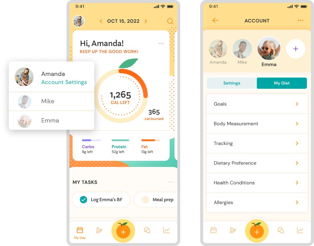 Families can operate through one account with different profiles based on everyone’s dietary needs.