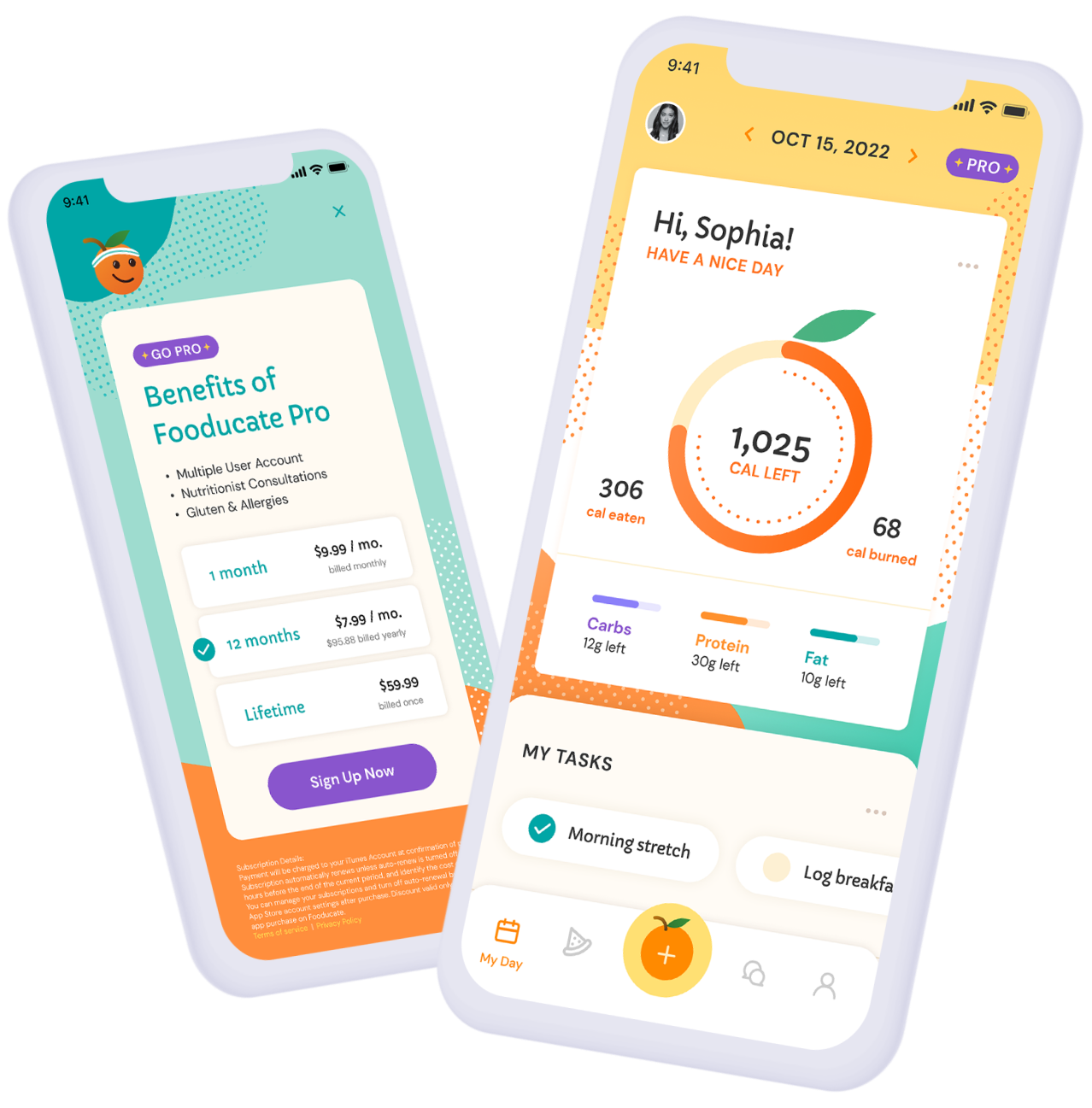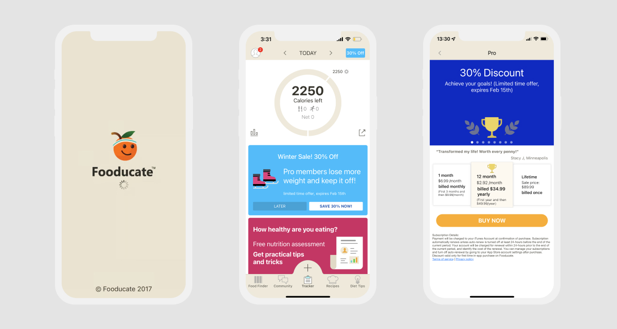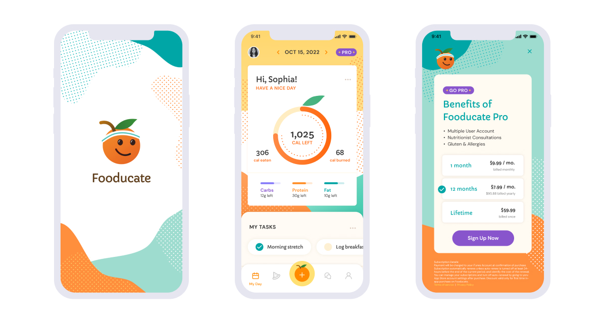 From our user interviews we learned that after some time many users became uninspired and felt discouraged about continuing with the app. So we wanted to make sure our app had a very welcoming, fun vibe. We also added some fun interactions to enhance the visual experience.